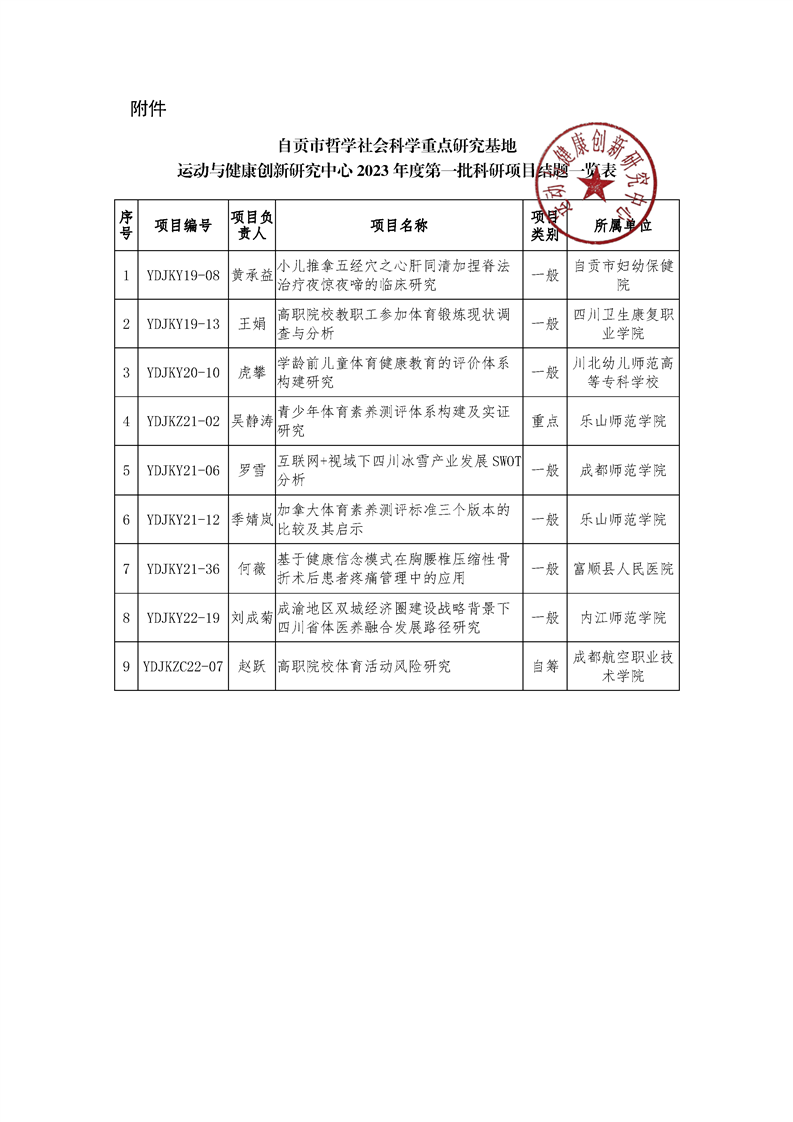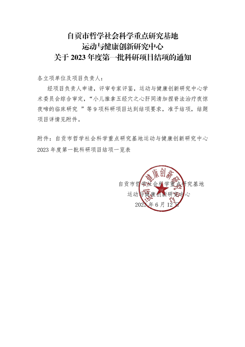 运动与健康创新研究中心关于2023年度第一批科研项目结项的通知