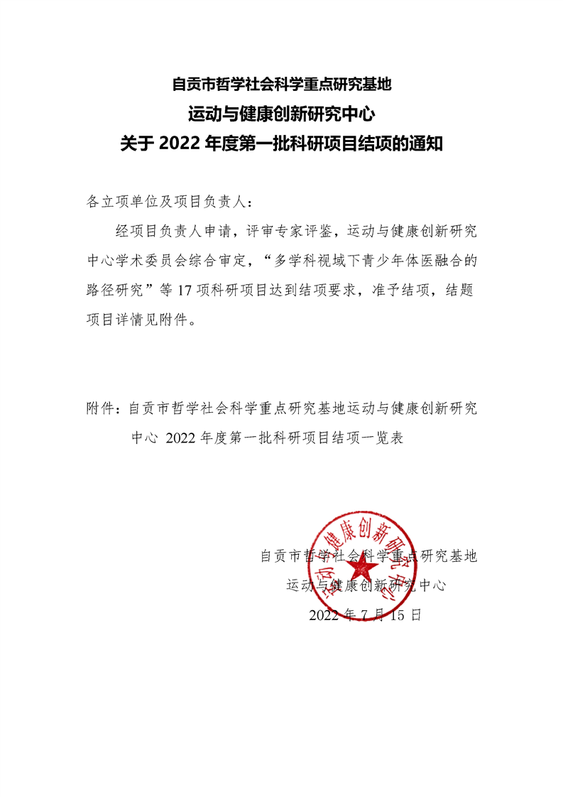 下一条:【项目申报】 自贡市哲学社会科学重点研究基地 运动与健康创新研究中心2022年度项目申报通知