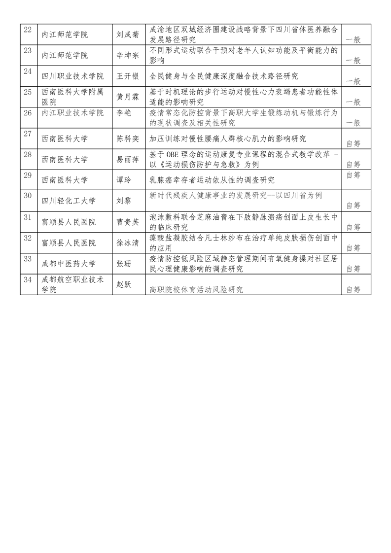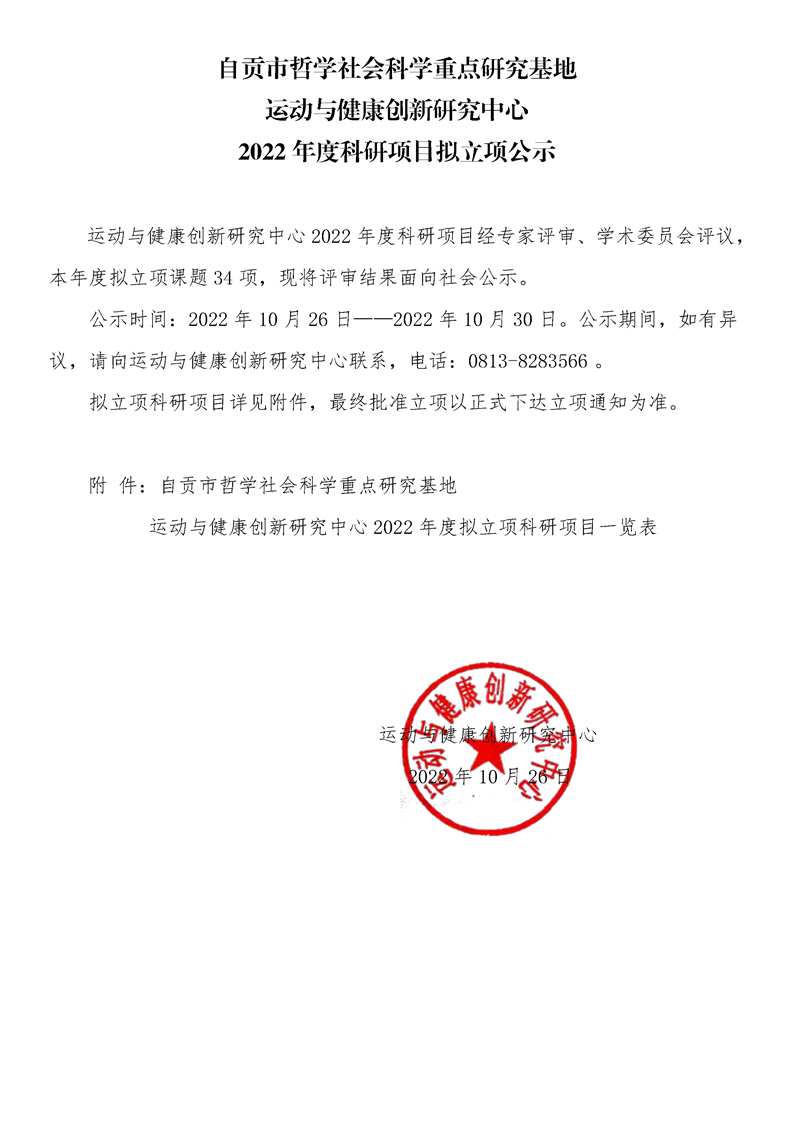 【公示】运动与健康创新研究中心2022年度科研项目拟立项公示