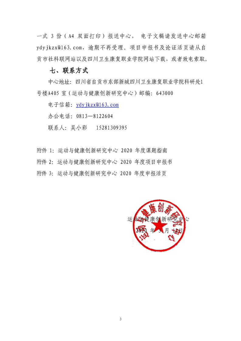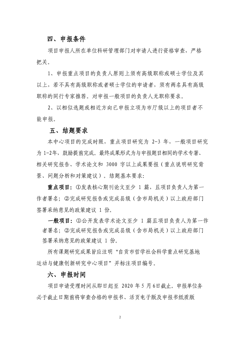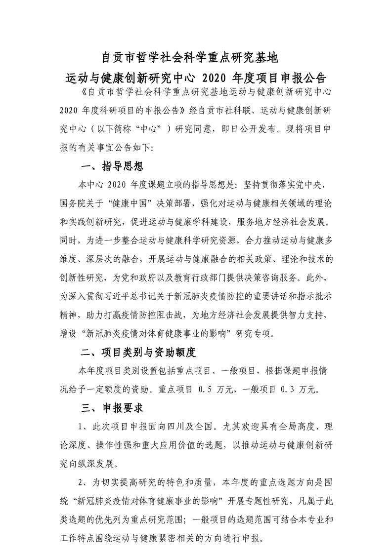 运动与健康创新研究中心2020年度课题申报公告