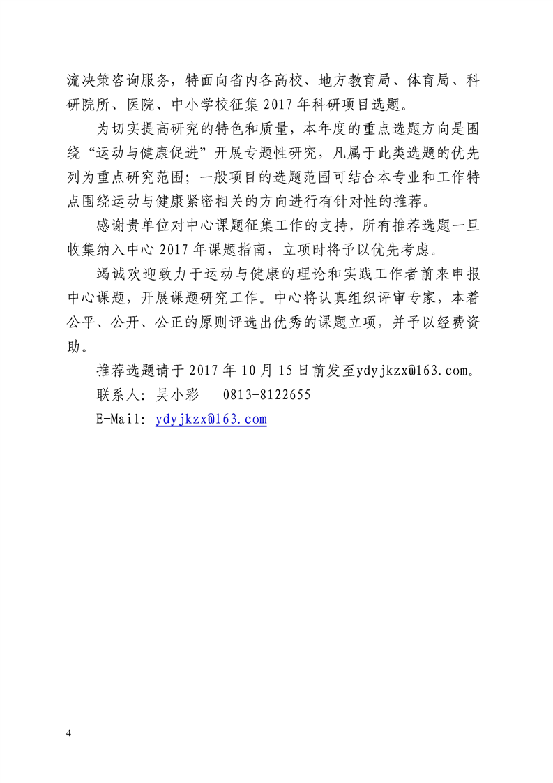 运动与健康创新研究中心2017年度科研项目选题征集表.doc