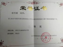 中药学专业学生先后荣获四川省高职院校大学生中药传统技能大赛二等奖4项、三等奖3项,四川省中医药职业教育大学生创新创业大赛二、三等奖各1项,四川省大学生创新创业大赛铜奖2项,成渝双城经济圈医药卫生职教联盟首届创新创业大赛三等奖1项等省级及以上奖项12项。