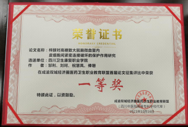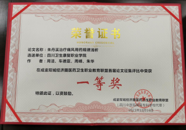 在近日刚刚结束的成渝双城经济圈医药卫生职教联盟、四川省中医药职业教育协会年会上,bat365药品食品学院教师参赛作品从众多作品中脱颖而出,荣获论文征集评比一等奖2项(邹利、周洁)、二等奖1项(周礼仕),中医药创新创业大赛三等奖1项(邹利等指导),教学设计大赛三等奖1项(周礼仕)。