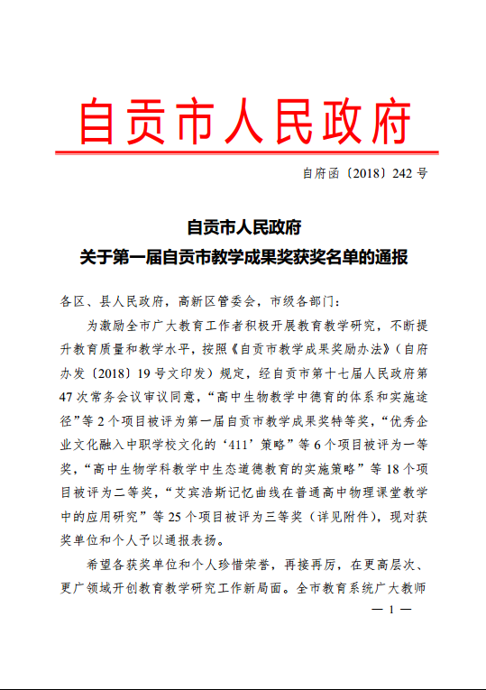 日前,自贡市人民政府举办的“第一届自贡市教学成果奖”评审工作圆满结束。据《自贡市人民政府关于第一届自贡市教学成果奖获奖名单的通报(自府函〔2018〕242号)》文件通知,bat365药学系钟辉云主任主持的科研课题成果《模拟药房在培养高素质中高职药学专业人才中的应用策略》荣获自贡市人民政府第一届教学成果奖二等奖。