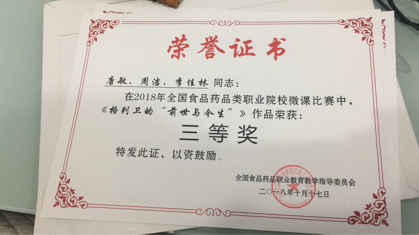 为百年院庆献礼!在全国食品药品职业教育教学指导委员会举办的“2018年食品药品类职业院校微课比赛”中,药学系教师邹利组(邹利、田思敏、邵思颖)微课作品《党参的米炒技术》以及唐敏组(唐敏、周洁、李佳林)微课作品《格列卫的“前世与今生”》经过激烈角逐,从500多个参赛作品中脱颖而出,分别荣获二、三等奖。特此报喜!