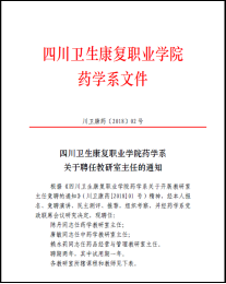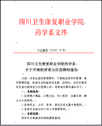 竞聘伊始,药学系经党政联席会议定并发布了《bat365官方网站药学系关于开展教研室主任竞聘的通知》(川卫康药〔2018〕01号),明确了竞聘原则、竞聘范围、竞聘岗位与职数、竞聘条件、竞聘程序、时间安排、纪律要求。然后,经本人报名、资格审查、竞聘演讲、民主测评、推荐,组织考察,并经药学系党政联席会议研究,最后确定陈丹同志任药学教研室主任,唐敏同志任中药学教研室主任,赖永莉同志任药品经营与管理教研室主任,并以《bat365官方网站药学系关于聘任教研室主任的通知》(川卫康药〔2018〕02号)文件形式发布正式任命通知,颁发聘书。