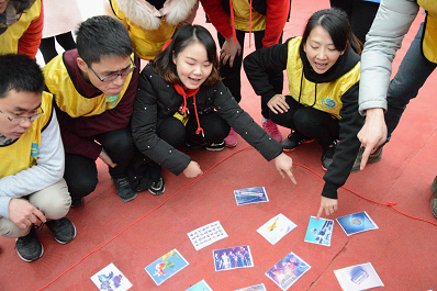 首先以“团队破冰”拉开了本次活动的序幕。40余名队员分成两组,每组都确定了队名、口号及队旗。紧接着进行了“抢滩登陆”、“急速60秒”、“动力圈”等拓展项目。在每个环节,队友们都积极磋商,反复练习,相互配合,再苦再难都绝不抛弃,绝不放弃。通过拓展训练,极大地锤炼了党员和老师们齐心协力、攻坚克难的坚强意志,强化了坚定的组织纪律意识和团队意识,提升了良好的资源分配和利用能力,增强了众志成城共克难关的信心和决心。