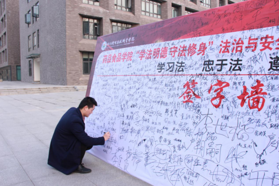 此次活动内容丰富,形式多样:有青年大学生违法犯罪典型案例展示、有法律法规书法书写展示、有法律法规知识竞赛、有守法主题牌合影、有法治与安全教育征文、手抄报征集作品展示、有寝室管理中心收缴的大功率电器展示、有法治与安全教育主题签字文化墙等。