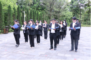 在卢德铭烈士纪念碑前,全体成员集体默哀,寄托哀思。接着,药学系党支部书记钟辉云、常务副书记杨光丽敬献花圈,缅怀卢德铭烈士。随后,钟辉云书记带领党员重温入党誓词,在党旗前庄严宣誓。宣誓结束后,药鹰先锋社同学进行了诗歌朗诵,歌颂卢德铭烈士的先进事迹。