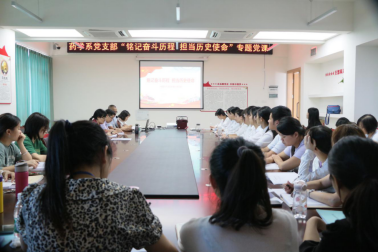 9月29日下午,药学系党支部在2-A514举行了“铭记奋斗历程 担当历史使命”专题党课。本次党课由药学系党支部联系领导学院副院长、学院党委委员熊骥主讲,药学系党支部全体党员和部分入党积极分子共计40余人参加。