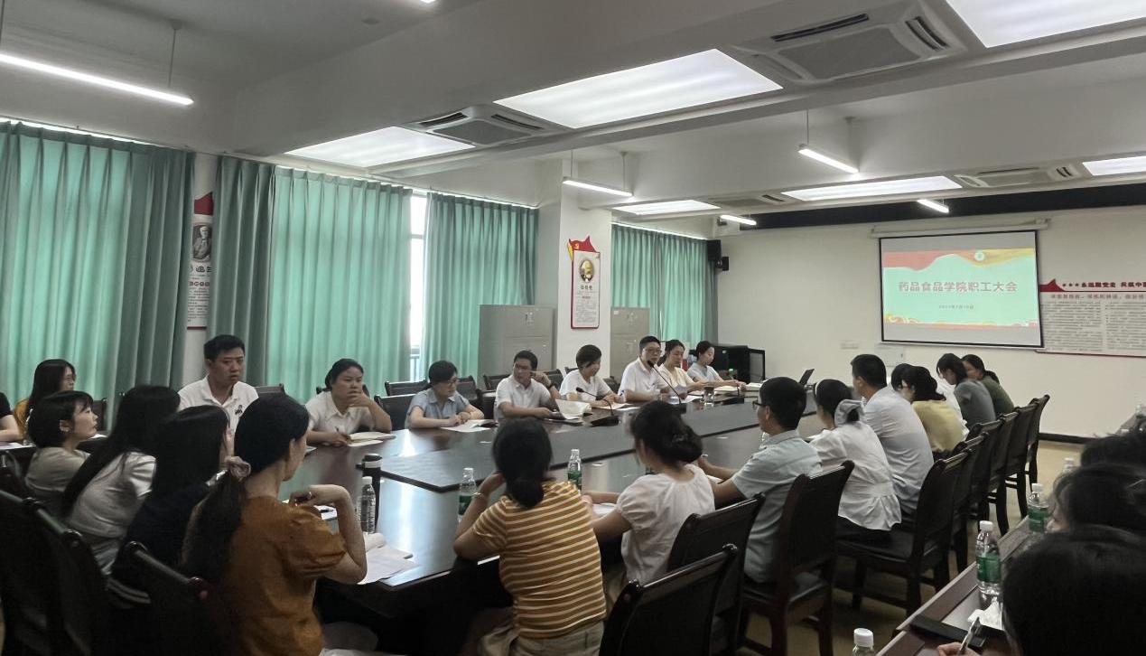 7月10日,药品食品学院期末教职工大会暨学校高质量发展专题研讨会在 2-A514 会议室召开,学校党委副书记、学院联系领导李华参加了会议。会议由学院党总支书记张前熙主持。