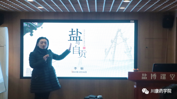 紧接着,盐业历史博物馆社教部李貌主任开展了“盐与自贡”的主题科普讲座。她从盐与自贡、城市的记忆、盐与健康三方面为师生们讲解了自贡盐业文化。