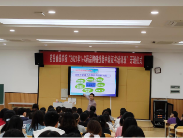 10月9日上午,药学系在1-B201举行了“2021年1+X药品购销技能中级证书培训班”开班仪式。开班仪式由药学系主任钟辉云主讲,药学系师生共计100余人参加。