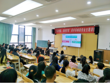 10月9日下午,药学系学生会创新创业部在一号教学楼B301举办了以“开启创新 成就梦想”为主题的创新创业讲座,药学系学生共150余人参加。