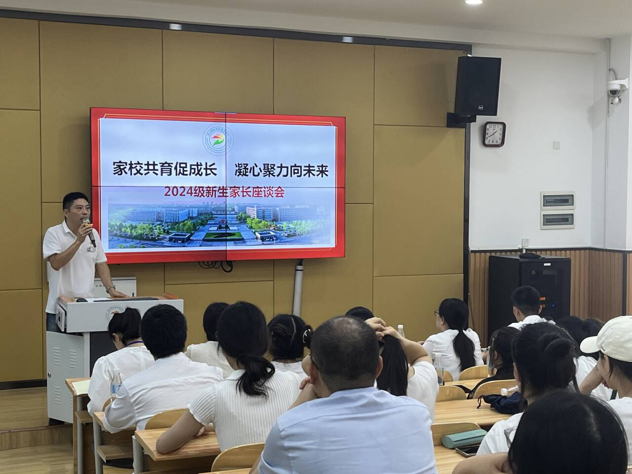杨院长则从专业学习的角度出发,向家长们介绍了各个专业的课程设置、就业去向等。同时,强调了大学学习的重要性,鼓励家长们与学院共同关注学生的学习情况,引导学生树立正确的学习目标和人生规划。