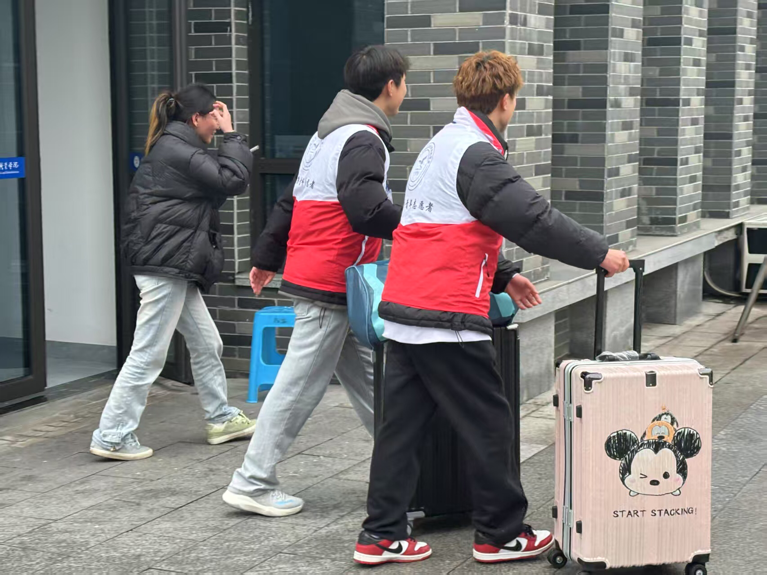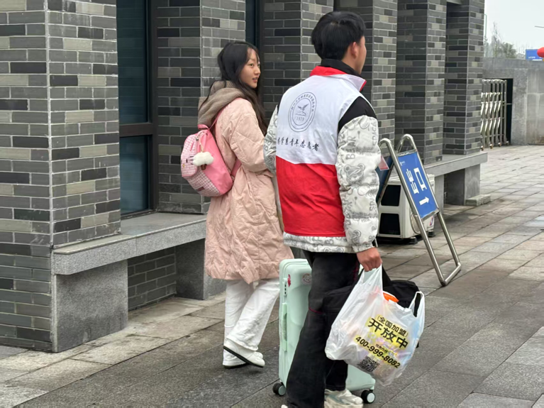 清晨,志愿者们早早地在校园各个关键位置就位,他们身披红色马甲,热情满满,秩序井然。从校门口协助搬运行李,到协助同学们前往宿舍区办理入住,志愿者们忙碌的身影成为校园里一道亮丽的风景线。“能帮助同学们顺利回校,开启新学期,我们也觉得很有意义” ,一位志愿者如此说道。