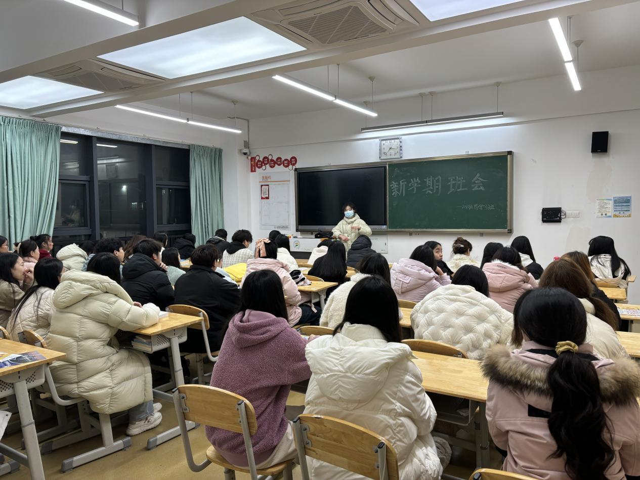 当晚,新学期第一次晚自习有序进行,各班级在辅导员的组织下开展了开学第一堂班会课。在班会上,辅导员们以亲切的话语开启了新学期的篇章,回顾了过去一学期班级取得的成绩,对新学期提出了新的期望和要求。与此同时,他们也详细讲解了班级管理规定,着重强调了校园安全和心理健康的重要性,鼓励同学们在新的学期树立目标,积极进取。班会结束后,同学们安静地坐在座位上,或预习新课,或完成作业,迅速进入了学习状态。