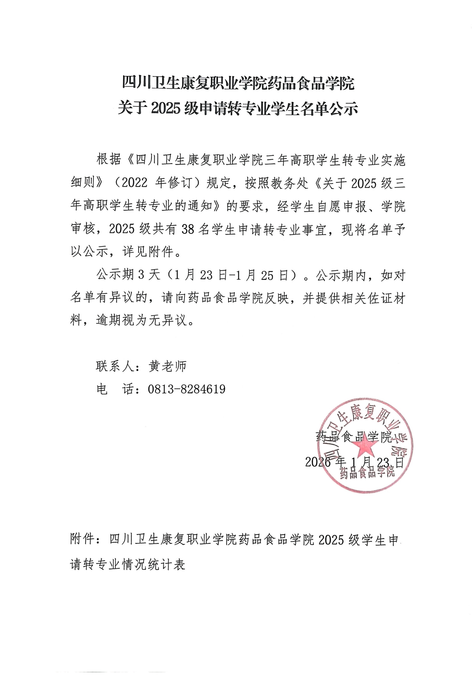 bat365官方网站药品食品学院关于2025级申请转专业学生名单公示