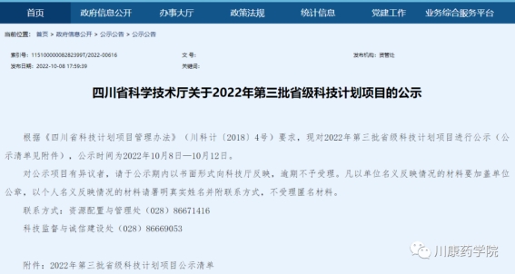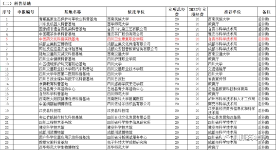 近日,四川省科技厅公布了第三批省级科技计划项目公示名单,bat365药品食品学院“中医药文化科普实践基地”获批立项,资助经费20万元,特此报喜。