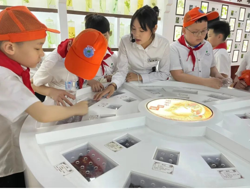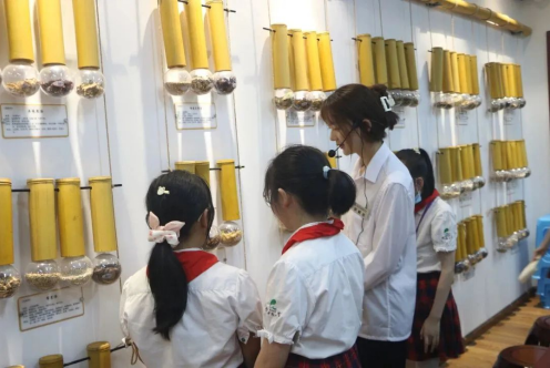 在中医药文化科普实践基地,同学们参观了中医药传统器具、药用植物浸制标本、动物标本、中药饮片标本等,通过讲解员的科普了解了中药的前世今生, 同时,还体验了药用植物AR互动展区、闻香识药台,在有趣的互动体验中收获中医药知识,探索中医药奥秘。