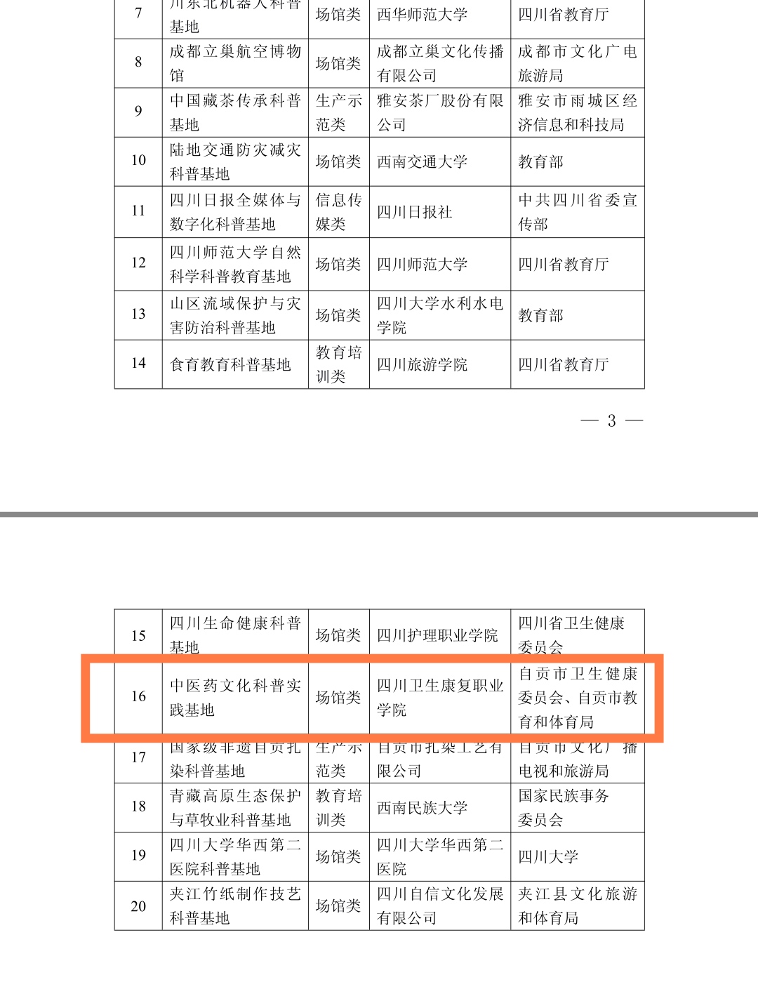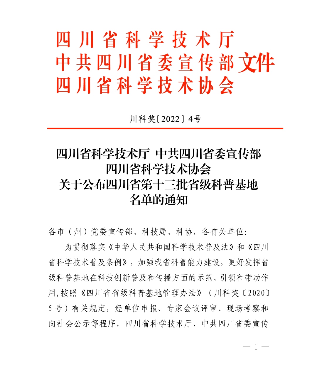 喜报:接四川省科学技术厅、中共四川省委宣传部、四川省科学技术协会《关于公布四川省第十三批省级科普基地名单的通知》(川科奖[2022]4号),bat365药品食品学院申报的“中医药文化科普实践基地”正式获批“四川省第十三批省级科普基地”。特此报喜。(2022.04.29,药品食品学院、科研处)