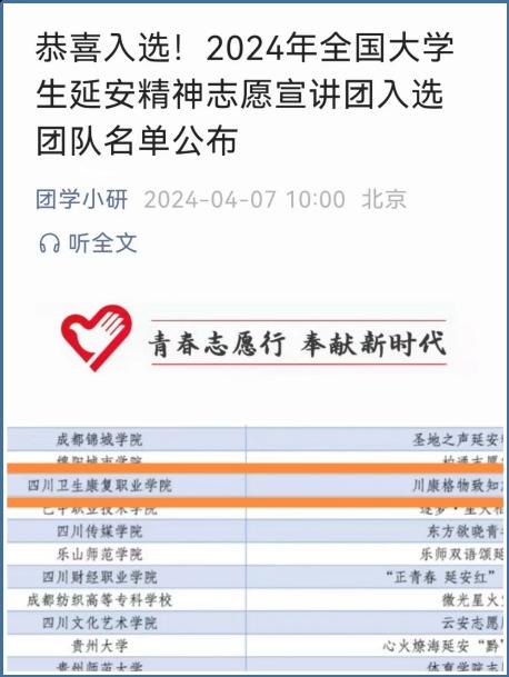 药品食品学院“川康燎原”和“川康格物致知”科普志愿团队分别入选2024年“全国大学生延安精神志愿宣讲团”和“全国大学生井冈山精神志愿宣讲团”