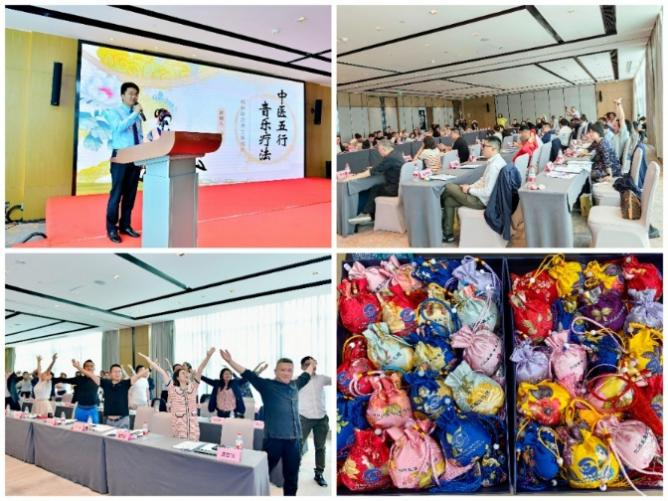 会上,中医药文化科普实践基地分享了防流感香囊,为与会领导、嘉宾带来中药芬芳。邱翔博士带来《中医五行音乐疗法》讲座,交流中医健康养生传承与创新的新疗法和新视角。