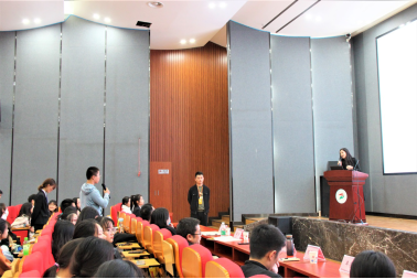 10月20日下午,药品食品学院在3-C209举行了首届“泉源堂储备店长班”宣讲及选拔工作会。成都泉源堂大药房连锁股份有限公司人力资源中心招聘高级经理韩龙、四川区域人力行政部招聘主管牟芳、成都光华东二路店店长贺宇琳、药品食品学院院长钟辉云、副院长杨光丽、党政办公室主任薛雪、学生科科长唐彬、教学科科长张锐毅及药品食品学院师生共计400余人参加。
