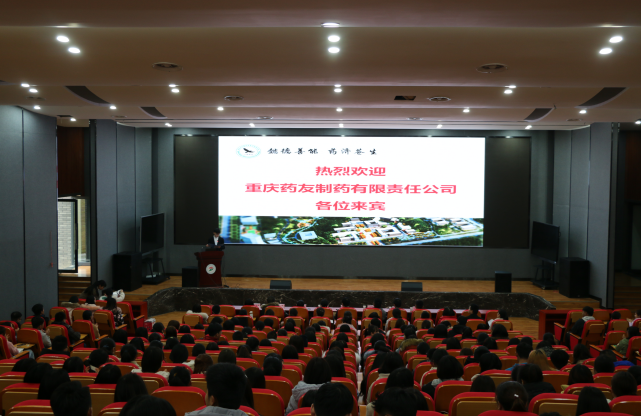 为深入推进校企合作,产教融合,不断提升协同育人质量,3月1日上午,重庆药友制药有限责任公司C2M·新零售总经理许占海、品牌运营总监宋晓晨一行莅校与药学系洽谈了校企合作事宜,并共同举办了题为“医药行业发展现状解析”的药学论坛讲座。