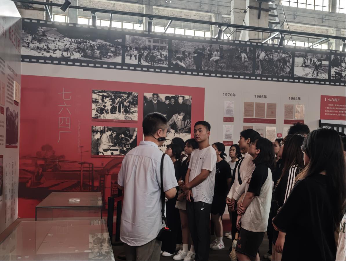 踏入展区,泛黄的老照片、布满岁月痕迹的生产工具、珍贵的历史影像,徐徐展开三线建设波澜壮阔的历史画卷。在讲解员的生动讲述下,同学们深入了解到三线建设艰辛而辉煌的历程。彼时,建设者们秉持 “艰苦创业、无私奉献、团结协作、勇于创新”的精神,在荒山野岭间开山辟路,凭借智慧与毅力攻克重重技术难题,从一穷二白起步,最终为当地构建起了相对完整的工业体系。这不仅有力推动了中西部地区经济发展,还显著增强了国防力量,优化了全国工业布局,铸就了一座不朽的精神丰碑。