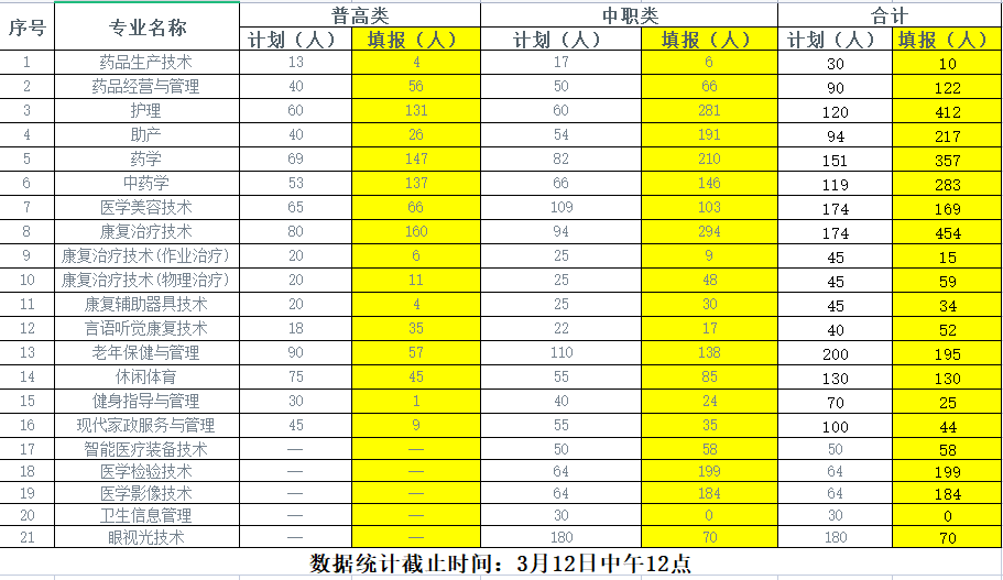 为方便了解bat3652023年高职单招招生专业报名情况,现将截至2023年3月12日12:00时的各专业填报情况公布如下,供考生填报时参考。