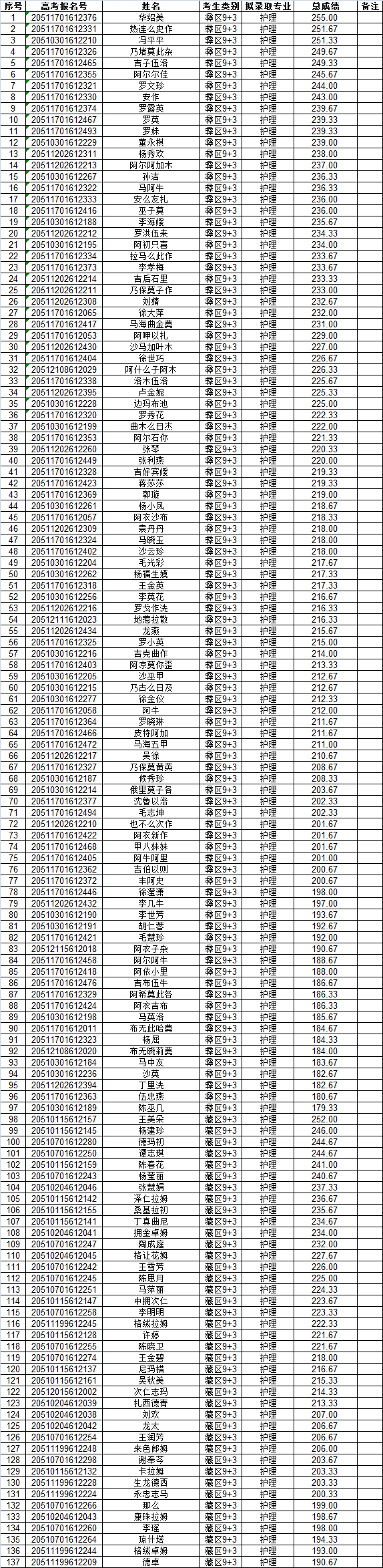 根据《bat365官方网站2020年普通类“9+3”高职单招招生章程》规定,现将bat365普通类“9+3”高职单招考试各类别拟录取分数控制线及拟录取137名考生名单公示如下。