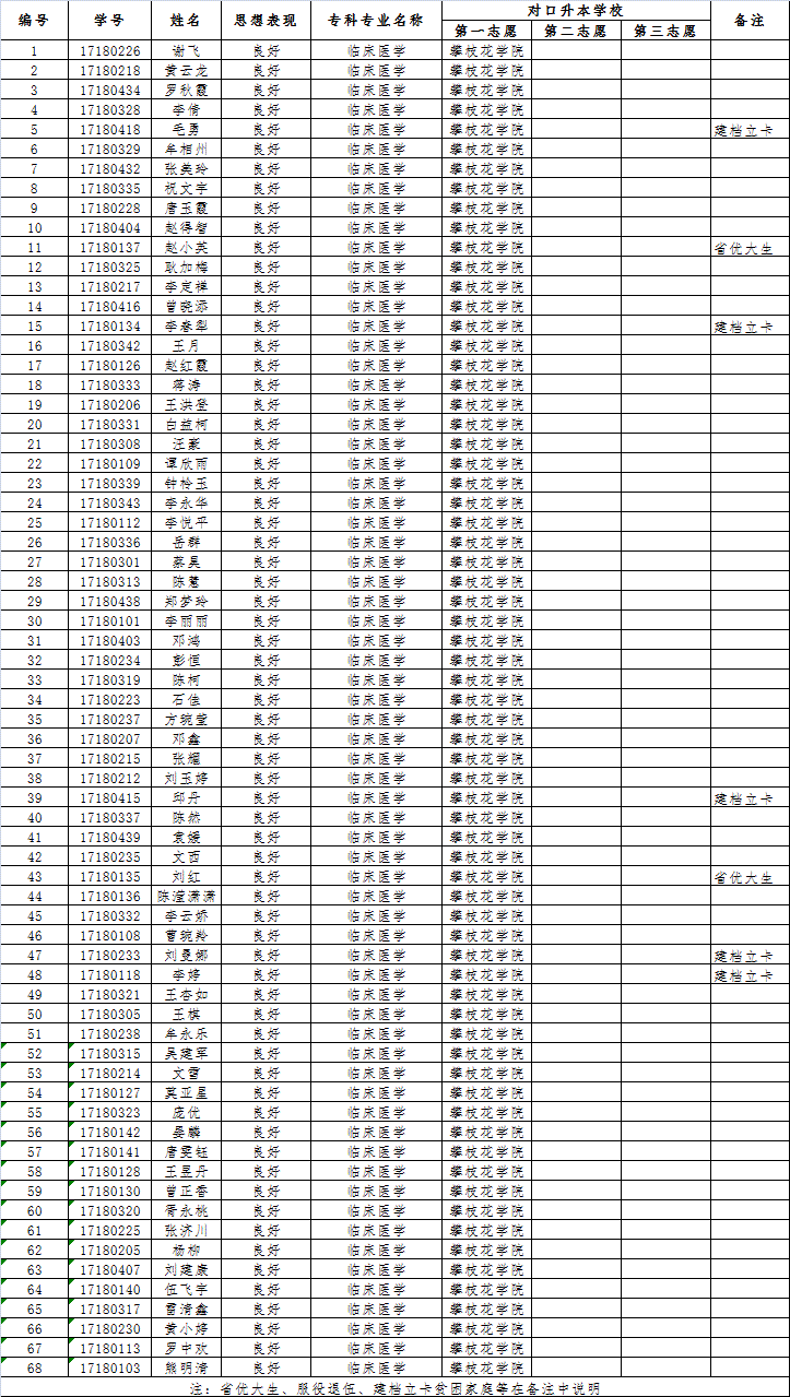 根据《四川省教育厅关于做好 2020 年普通高校专升本计划管理工作的通知》(川教函〔2020〕191号)精神和攀枝花学院遴选优秀专科毕业生升入本科学习(以下简称“专升本”)工作的相关规定精神,经系部审核,拟推荐68名同学参加攀枝花学院2020年“专升本”考试,现将推荐考生名单进行公示(名单附后)。