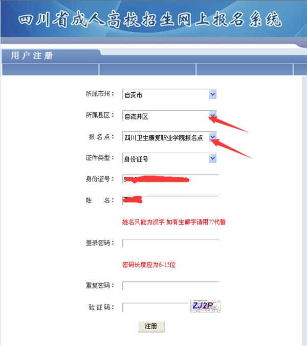 第2步:注册,选择自贡市—自流井区招办—bat365官方网站报名点